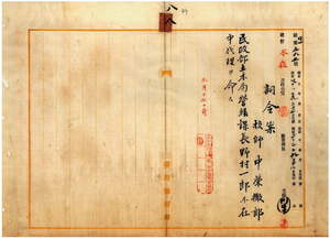 八 台湾総督府民政部土木局長心得長尾半平ノ内申ニ依リ技師中栄徹郎ニ民政部土木局営繕課長野村一郎不在中ノ代理ヲ命ス