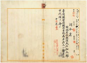 一四 台湾総督府国語学校長本荘太一郎ノ内申ニ依リ台湾総督府国語学校教授大石和太郎ニ台湾総督府国語学校長本荘太一郎不在中ノ代理ヲ命ス