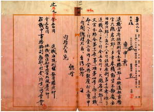 一三 退職台湾総督府法院判官安田勝次郎ト休職台湾総督府鉄道部事務官大滝岩次郎ニ在職中事務格別勉励ニ付キ一時金ヲ賞与ス