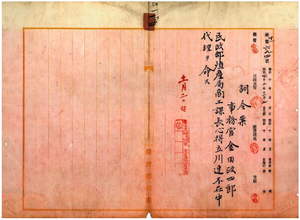 一四 台湾総督府民政部殖産局長代理福留喜之助ノ具申ニ依リ台湾総督府事務官金田政四郎ニ民政部殖産局商工課長心得立川連不在中ノ代理ヲ命ス