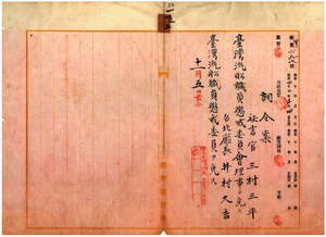 一五 台湾汽船職員懲戒委員長持地六三郎ノ内申ニ依リ台湾総督官房秘書官三村三平ノ台湾汽船職員懲戒委員会理事ヲ免シ、台北庁長井村大吉ノ台湾汽船職員懲戒委員ヲ免ス