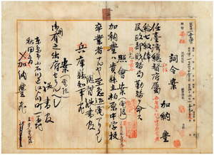 二 台湾総督府民政部財務局長代理高山仰ノ内申ニ依リ兵庫県立柏原中学校卒業並ニ早稲田大学高等予科卒業同大学文学部英文科在学中ノ加納豊ヲ台湾総督府属ニ任シ民政部財務局勤務ヲ命ス