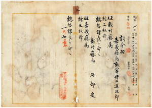 五 嘉義庁長北原種忠ト新竹庁長里見義正ノ内申ニ依リ嘉義庁属井出道次郎ヲ新竹庁属ニ任シ総務課長ヲ命シ、新竹庁属石部定ヲ嘉義庁属ニ任シ総務課長ヲ命ス