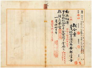 一三 台湾総督府通信属安部官吾ハ脚気ニ罹リ職ニ堪ヘサル旨ヲ以テ退職ヲ願出タルニ依リ昇級ノ上事務格別勉励ニ付キ一時金ヲ賞与シ本官ヲ免ス