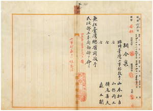 三一 台湾総督府民政部土木局長心得代理高橋辰次郎ノ内申ニ依リ臨時台湾工事部技手ノ山本和吉・山形丹三・横尾善夫・森三朗ニ台湾総督府技手兼任ヲ命シ民政部土木局勤務ヲ命ス