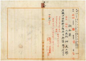 三九 台湾総督府民政部通信局長代理井村大吉ノ内申ニ依リ明治四一年四月一三日ニ御用済解嘱トナリタル逓信技師元嘱託畑英三郎ニ在職中事務格別勉励ニ付キ一時金ヲ賞与ス
