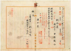 九 澎湖郵便局勤務台湾総督府通信手中野健介ハ疾病ニ罹リ職ニ堪ヘサル旨ヲ以テ辞職願ニ依リ本官ヲ免シ事務格別勉励ニ付キ一時金ヲ賞与ス