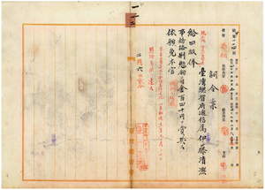 一二 台湾総督府通信属伊藤清凞ハマラリアニ罹リ職ニ堪ヘサル旨ヲ以テ辞職願ニ依リ昇級ノ上事務格別勉励ニ付キ一時金ヲ賞与シ本官ヲ免ス