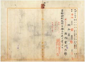 二〇 台湾総督府民政部殖産局所属園芸試験場嘱託宮川次郎ヨリ転地療養ヲ願出タルニ付キ許可(二月一四日指令第九五〇号)シタル処更ニ全快致シ難キニ付キ辞職ヲ願出テ認メラレタルニ依リ在勤中事務格別勉励ヲ以テ一時金ヲ賞与ス