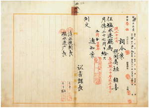 二八 淡水税関長岩政憲三ト塩水港庁朝倉菊三郎ノ内申ニ依リ台湾総督府税関属堀頼喜ヲ塩水港庁属ニ任ス