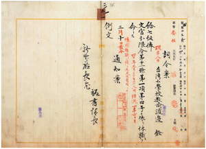 三一 新竹庁長小沢武憲ノ内申ニ依リ新竹尋常高等小学校勤務台湾小学校教諭渡辺銓ニ僂麻質斯ニ罹リタル為メ文官分限令第一一条第一項第四号ニヨリ休職ヲ命ス