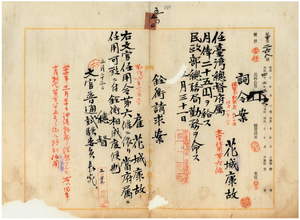 五〇 沖縄県士族元沖縄県属総務局勤務雇花城康故ヲ台湾総督府属ニ任シ民政部総務局勤務ヲ命ス