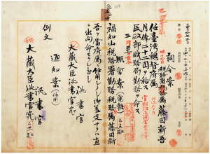 五四 台湾総督府民政部財務局長代理高山仰ノ内申ニ依リ京都税務監督局福知山税務署勤務税務署属藤田新吾ヲ台湾総督府属ニ任シ民政部財務局勤務ヲ命ス