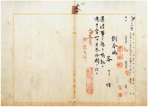 五八 台湾総督官房秘書課長三村三平ノ伺ニ依リ清国福建省守州駐留開教使谷了悟ニ通信事務ヲ嘱託ス[三月三日付京都珠数屋町経長族館田中善立より官房秘書課長宛の書翰一通あり]