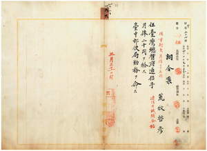 六六 台中郵便局長野村勘四郎ノ内申ニ依リ台中郵便局勤務通信事務員荒牧哲彦ヲ台湾総督府通信手ニ任シ台中郵便局勤務ヲ命ス