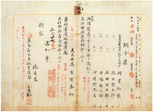 六九 台湾総督府民政部殖産局長代理福留喜之助ノ内申ニ依リ農商務省技師ノ時重初熊・榎本惣太郎・右田百太郎・同省属ノ平塚永之助、同省雇ノ伊与部太吉ニ獣医血清製造ニ関スル事務ヲ嘱託シ民政部殖産局勤務ヲ命シ、農商務省属宮部春和ヲ台湾総督府属ニ兼任シ民政部殖産局勤務ヲ命ス