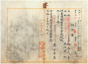 七一 台湾総督府中学校長本荘太一郎ノ内申ニ依リ台湾総督府中学校教務嘱託記本次嘉一郎ヲ台湾総督府中学校教諭ニ任シ、台湾総督府中学校雇景山真盛ヲ台湾総督府中学校書記ニ任ス