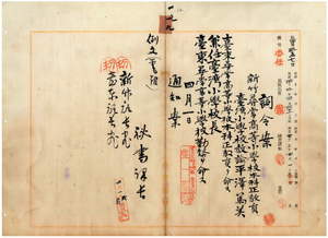 一九 台東庁長森尾茂助ノ内申ニ依リ新竹尋常高等小学校本科正教員台湾小学校教諭平沢篤美ヲ台東尋常高等小学校本科正教員兼台湾小学校長ニ任シ台東尋常高等小学校勤務ヲ命ス