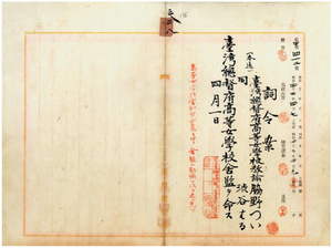 三八 台湾総督府高等女学校長尾田信直ノ稟申ニ依リ台湾総督府高等女学校教諭脇野つい及ヒ渋谷はるニ台湾総督府高等女学校舎監ヲ命ス