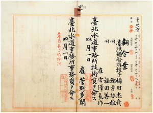 總督府技手櫛田忠彥台北水道事務所技術員ヲ命ス