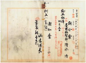 五三 台東庁警部清水清ハ蕃地出張中凶蕃ノ為メ重傷危篤ニ付キ台湾総督府民政部警察本署長大津麟平ノ内申ニ依リ昇級ス