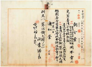 五五 桃園庁長西美波ノ内申ニ依リ台湾公学校教諭兼校長並ニ台湾小学校教諭岡本幸二ニ台湾小学校教諭兼務ヲ免シ、台北第二尋常高等小学校本科正教員台湾小学校教諭蓼沼鉄之輔ニ桃園尋常高等小学校本科正教員ヲ命ス