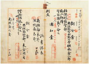 八二 深坑庁長丹野英清ノ具状ニ依リ南投庁警務課員警部但木金八郎ヲ深坑庁警部ニ任シ警務課長ヲ命シ、南投庁埔里社支庁長警部長倉用貞ニ警務課長ヲ命シ警務課長勤務中加俸ス