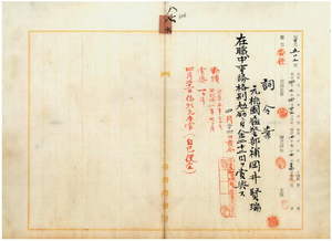 八六 桃園庁長西美波ノ内申ニ依リ家事都合上退職ノ元桃園庁警部補岡井賢瑞ニ在職中事務格別勉励ニ付キ賞与ス
