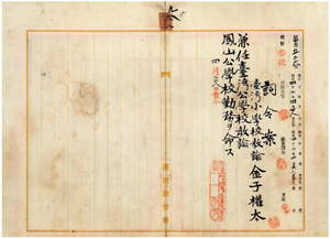 九八 鳳山庁長横山虎次ノ内申ニ依リ台湾小学校教諭金子権太ヲ台湾公学校教諭ニ任シ鳳山公学校勤務ヲ命ス