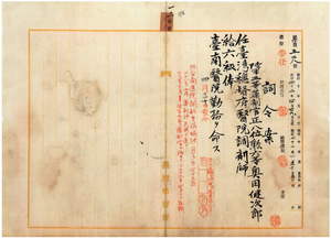 一〇〇 台南医院長事務取扱中川幸庵ノ内申ニ依リ陸軍三等薬剤官奥田健次郎ヲ台湾総督府医院調剤師ニ任シ台南医院勤務ヲ命ス