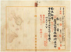 一〇四 台湾総督府民政部財務局長代理高山仰ノ内申ニ依リ台湾総督府属板持丑次郎ハ病気危篤ニ付キ昇級ノ上事務格別勉励ニ付キ一時金ヲ賞与ス