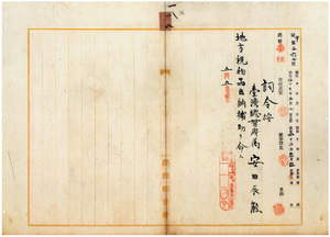 一八 台湾総督府民政部土木局長心得代理高橋辰次郎ノ内申ニヨリ台湾総督府属安田辰熊ニ地方税物品出納補助ヲ命ス