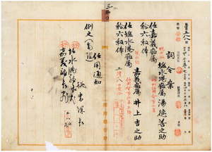 三〇 塩水港庁長朝倉菊三郎ト嘉義庁長北原種忠ノ内申ニ依リ塩水港庁属湯徳善之助ヲ嘉義庁属ニ任シ嘉義庁属井上吉之助ヲ塩水港庁属ニ任ス