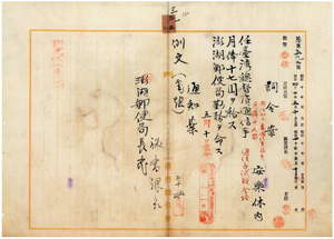 三三 澎湖郵便局長萩原寛太郎ノ内申ニ依リ澎湖郵便局通信助手兼通信事務員安楽休内ヲ台湾総督府通信手ニ任シ澎湖郵便局勤務ヲ命ス