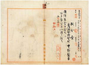 五〇 台湾総督府民政部警察本署長大津麟平ノ内申ニ依リ台湾総督府警部中野堅吉ニ通訳兼掌ヲ命ス