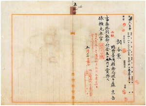 五四 臨時台湾糖務局技手森宗吉ハ麻刺利亜ニ罹リ職ニ堪ヘサル旨ヲ以テ辞職願ニ依リ事務格別勉励ニ付キ一時金ヲ賞与シ本官ヲ免ス