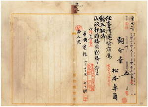 三三 台湾総督府民政部財務局長代理峡謙斉ノ内申ニ依リ京都大学法科卒業生松本卓爾ヲ台湾総督府属ニ任シ民政部財務局勤務ヲ命ス