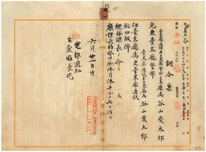 六一 台東庁長森尾茂助ノ内申ニ依リ台東庁通訳兼警部台東庁属谷山愛太郎ニ台東庁警部ノ兼任ヲ免シ総務課長ヲ命シ庁課長勤務中加俸月俸十分ノ七ヲ給ス