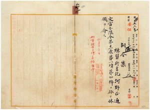 六二 台湾総督府民政部警察官及司獄官練習所長代理教官沢井瀬平ノ内申ニ依リ台湾総督府警察官及司獄官練習所書記河野正通ハ刑事被告事件ニヨル拘留中ニ付キ文官分限令第一一条第一項第四号ニ依リ休職ヲ命ス