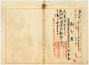 九 台湾総督府民政部警察本署長大津麟平並ニ台湾総督府民政部通信局長代理賀来佐賀太郎ノ内申ニ依リ台湾総督府属兼台湾総督府警部戸田重春ノ兼官ヲ免シ(六月三〇日付)民政部通信局勤務ヲ命ス