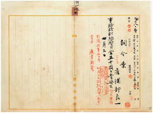 一七 台湾総督府民政部殖産局長代理福留喜之助ノ具申ニ依リ雇浦部良一ニ事務格別勉励ニ付キ一時金ヲ賞与ス