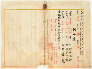台湾総督府民政部警察本署長大津麟平ノ内申ニ依リ扇海丸船長台湾総督府雇小野竹太郎・扇海丸機関長台湾総督府雇武田宇次郎・扇海丸運転士台湾総督府雇石井道寛ハ御用済ニ付キ雇ヲ免ス