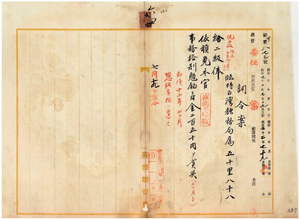 六四 臨時台湾糖務局属五十里八十八ハ麻拉里亜ニ罹リ職務ニ堪ヘサル旨ヲ以テ辞職願ニ依リ昇級ノ上本官ヲ免シ事務格別勉励ニ付キ一時金ヲ賞与ス