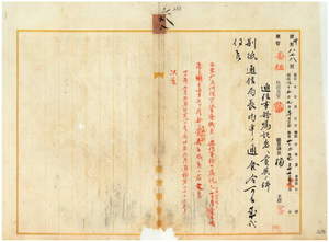 六八 台湾総督府通信局長代理賀来佐賀太郎ノ内申ニ依リ郵便電信ニ関スル事務嘱託ノ台東庁警務課勤務台東庁警部近藤満夫・台東庁花蓮港支庁長台東庁警部青木文三郎、郵便ニ関スル事務嘱託ノ台東庁巴珂衛支庁長台東庁警部斎藤平馬・阿緱庁警務課勤務阿緱庁警部脇田義一・阿緱庁枋リョ支庁長阿緱庁警部高江仲太郎・台東庁成広澳支庁長台東庁警部照島彪ヘ事務格別勉励ニ付キ一時金ヲ賞与ス
