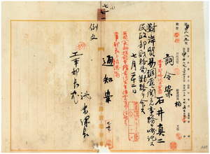 七一 台湾総督府民政部財務局長小林丑三郎ノ内申ニ依リ臨時台湾工事部嘱託石井真二ニ対岸貿易調査ニ関スル事務ヲ嘱託シ民政部財務局勤務ヲ命ス