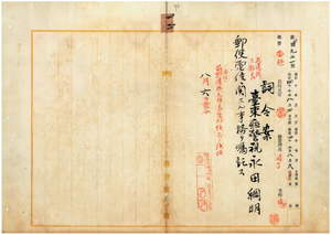 一二 台湾総督府民政部通信局長代理賀来佐賀太郎ノ内申ニ依リ台東庁花蓮港支庁長台東庁警視永田綱明ニ郵便電信ニ関スル事務ヲ嘱託ス
