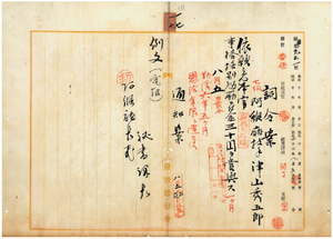 一七 阿緱庁技手津山秀五郎ハ麻拉里亜ニ罹リ職ニ堪ヘサル旨ヲ以テ辞職願ニ依リ本官ヲ免シ事務格別勉励ニ付キ一時金ヲ賞与ス