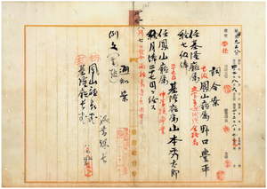 二三 基隆庁長曽祢吉弥ト鳳山庁長横山虎次ノ内申ニ依リ鳳山庁属野口豊平ヲ基隆庁属ニ、基隆庁属山本秀太郎ヲ鳳山庁属ニ任ス