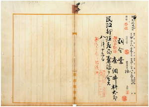 四五 台湾総督府民政部通信局長代理賀来佐賀太郎ノ内申ニ依リ細井枡太郎ニ雇ヲ命シ台湾総督府民政部通信局勤務ヲ命シ(八月一二日付)、台湾総督府民政部殖産局長代理福留喜之助ノ具申(八月一三日付)ニ依リ台湾総督府民政部殖産局兼務ヲ命ス