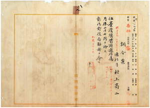 八 彰化郵便局長記本寅之助ノ内申ニ依リ彰化郵便局員林郵便出張所主任台湾総督府通信手村上高二ヲ昇給ノ上台湾総督府通信属ニ任シ彰化郵便局勤務ヲ命ス